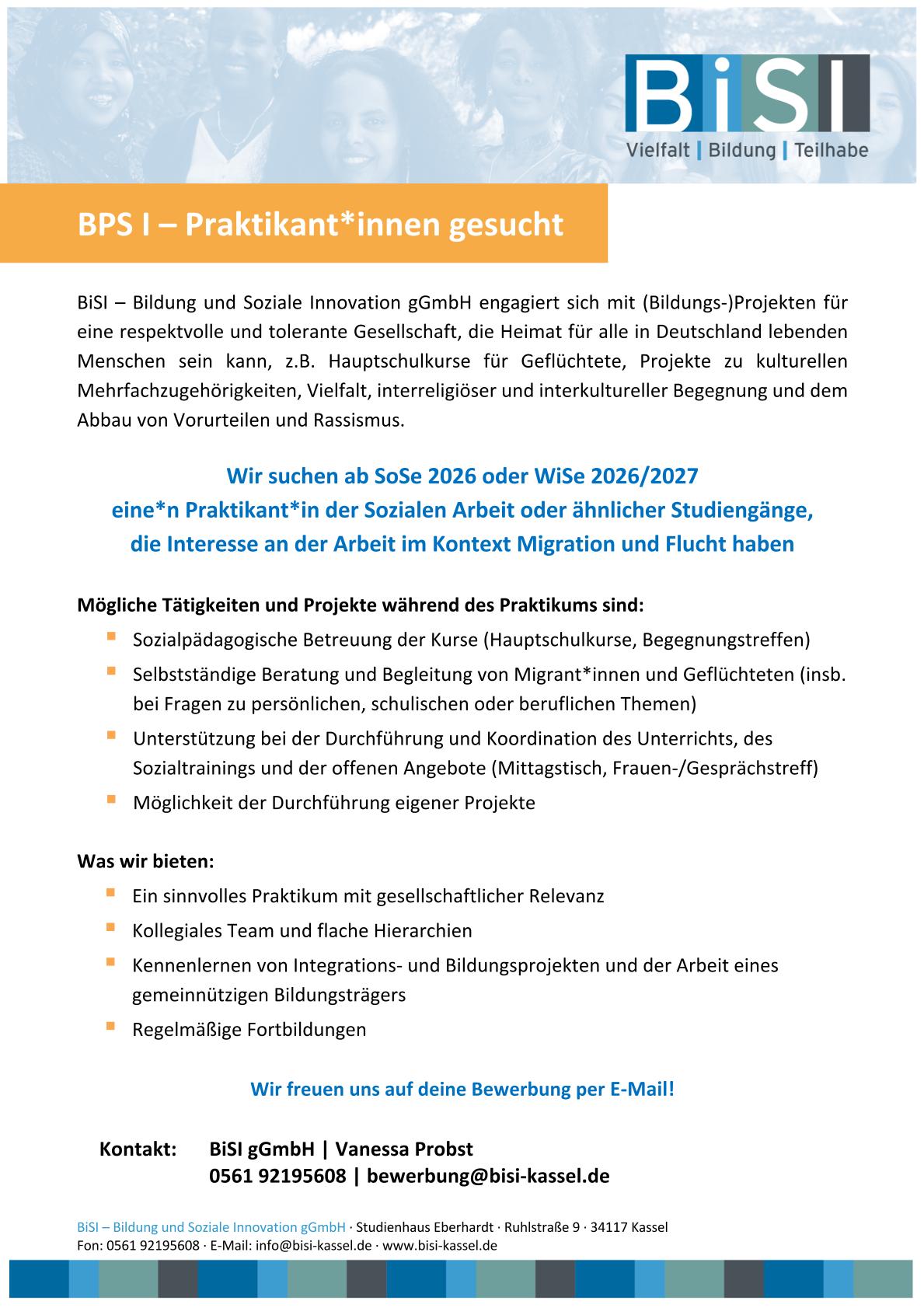 Fon: 0561 92195608 · E-Mail: info@bisi-kassel.de · www.bisi-kassel.de