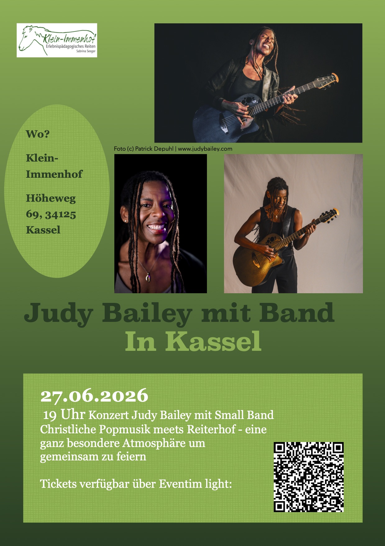 Am 27.06.2026 um 19 Uhr verzaubert Judy erstmals auf Klein-Immenhof in Kassel das Publikum. Wir freuen uns auf eine gute Stimmung! Vor Ort wird ein Foodtruck sein, sodass für Speisen und Getränke jeglicher Art gesorgt ist.