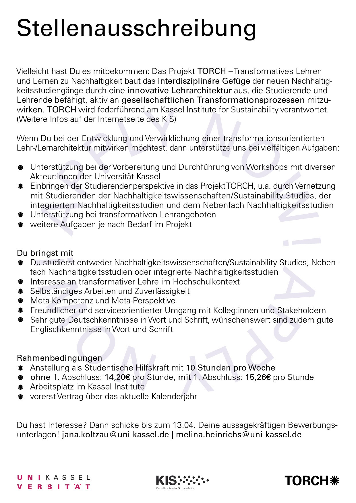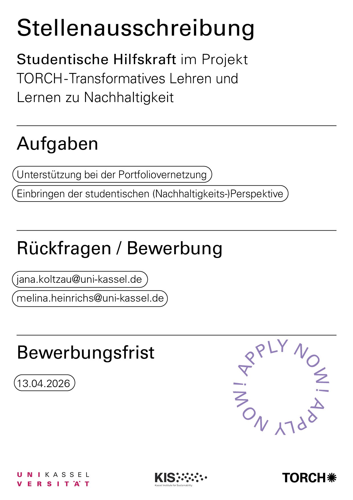 Möchten Sie die Anzeige „Studentische Hilfskraft für die Portfoliovernetzung im Projekt TORCH gesucht“ wirklich löschen?