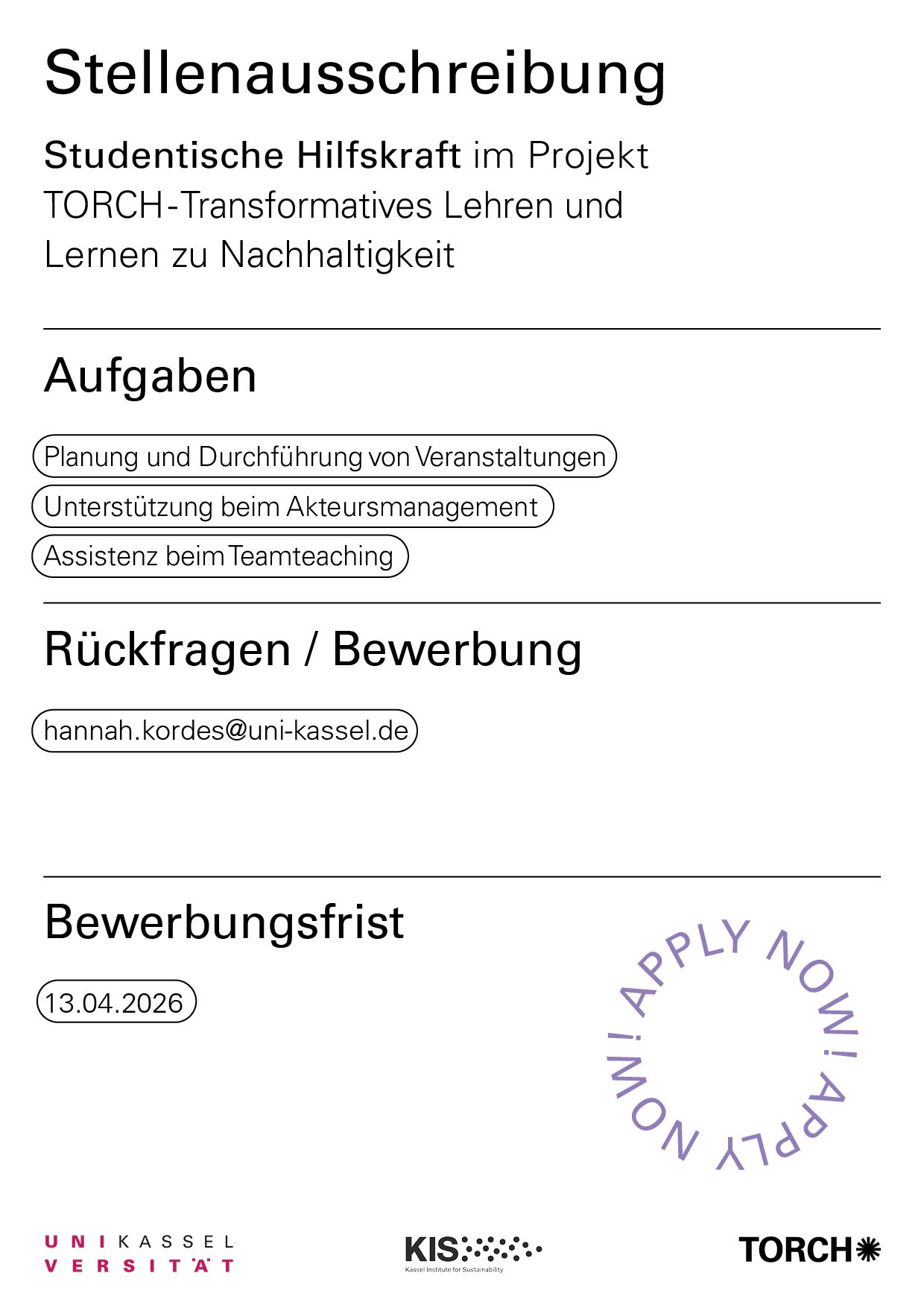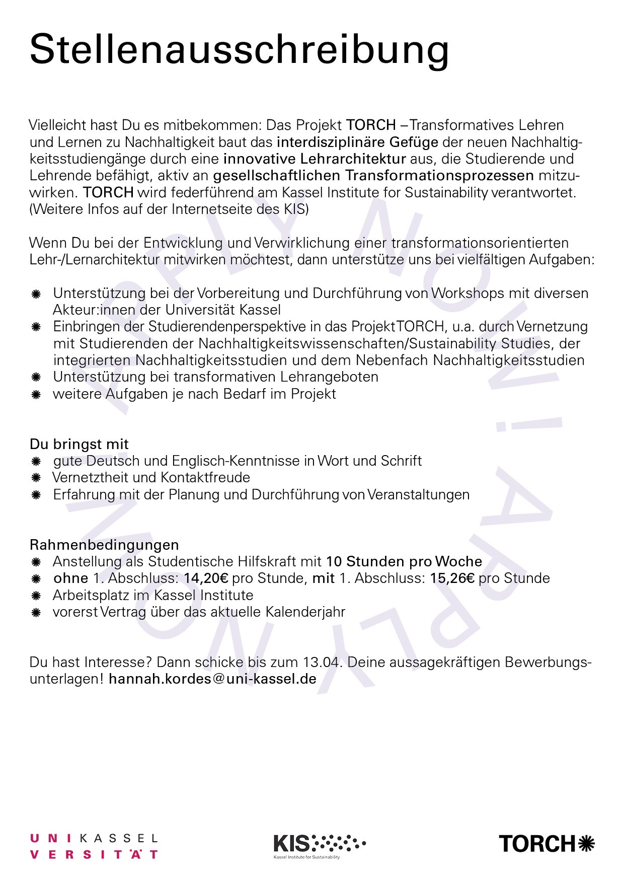 Möchten Sie die Anzeige „Studentische Hilfskraft (m/w/d) für das Projekt TORCH gesucht“ wirklich löschen?